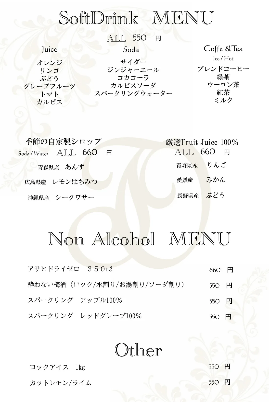 +¥1,100(税込)ジュース、ソーダ、コーヒー、紅茶etc